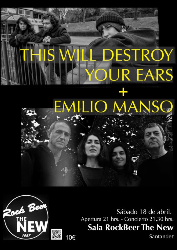 Emilio Manso presentan su último disco: “Un guion mal aprendido”, grabado el pasado verano. Su música se podría definir como una suerte de canción de autor after-punk. Sus directos están cargados de sonidos severos y actitud pertubadora que te dejan con esa sensación tan complicada de encontrar hoy en día de “cero artificio”. Cuando uno los ve tiene la sensación de unos “verdaderos ochenta”, nada impostados. Música tremendamente disfrutable para fans de ritmos espartanos y oscuros en la onda de Joy Division o Bauhaus por ejemplo.