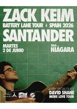El martes 2 de junio de este 2026, Santander será una de las paradas destacadas de la gira mundial Battery Lane Tour, con la presentación en formato solitario y muy personal de Zack Keim. En un concierto íntimo en la Sala Niágara, Keim desgranará las canciones de su segundo LP Battery Lane con voz, guitarra y teclado, mostrando la esencia pura de su escritura y sensibilidad sonora.